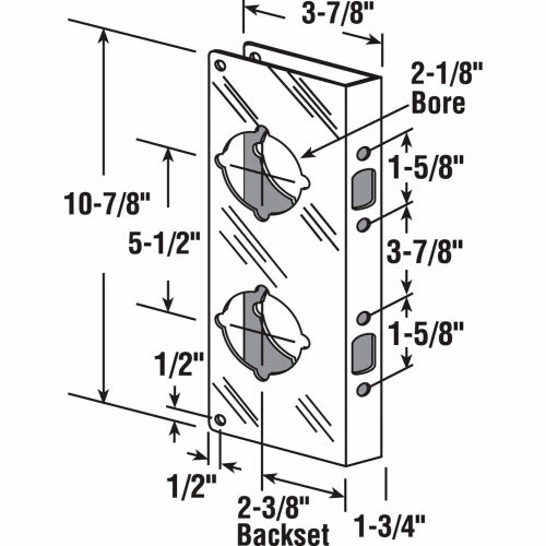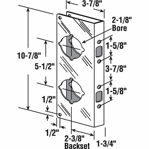 Reinforces and repairs doors, assists in preventing forced entry. Use on Interior/Exterior wood or metal doors with mortise or drive-in latches. Accommodates key-in-knob locksets and deadbolts or combination locksets. Easy to install. Includes door channel, four #10×1″ combo screws, four #10-32 hex nuts, four #8×5/8″ phillips truss head screws.