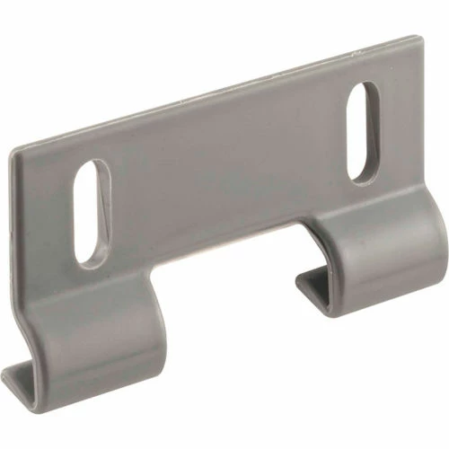 This shower door guide is constructed from gray plastic. It helps to keep your shower door on its track. This style guide fits on Keystone Brand and similar styled tub enclosures.
