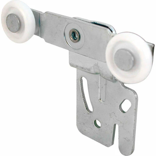 This closet roller comes with twin 7/8 In. diameter nylon wheels and features a top hung side mounted design. They come affixed to a 1/4 In. offset adjustable steel bracket. Easily fits on doors that are 3/4 In. to 1-3/8 In. thick.