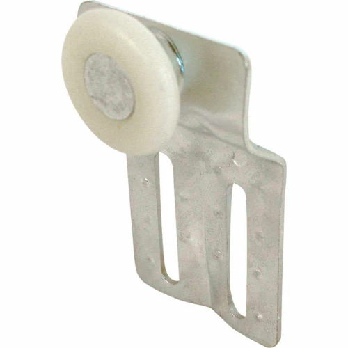 This top hung wardrobe roller is secured on a 7/16 in offset adjustable bracket. The wheel is constructed from nylon and features an oval edge. Fits a 3/4 in. to 1-3/8 in. thick door. This roller is used on Superior doors.
