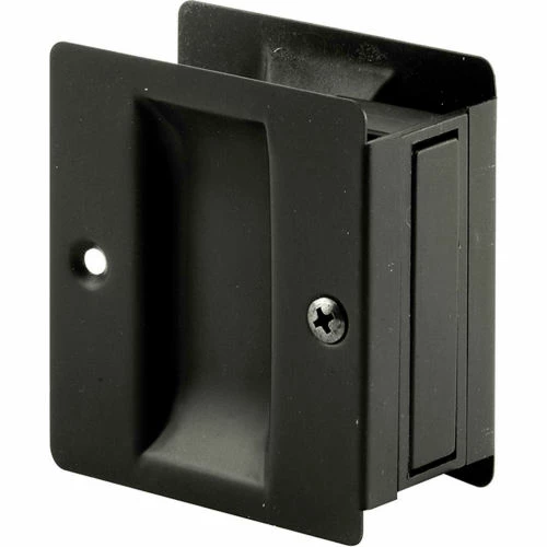 This pocket door pull is constructed from solid brass and comes plated in bronze. It fits a 1-3/8 in. thick door and includes a die cast pull hook. This pull comes complete with fasteners for a quick and easy installation.