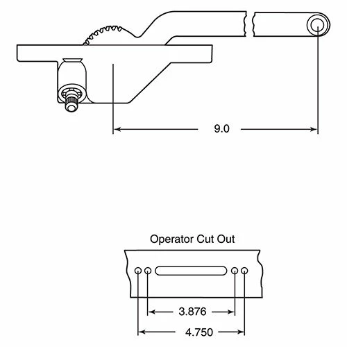Operater provides movement for 90 degree opening. Used on Steel Framed windows. Hardened steel arm.